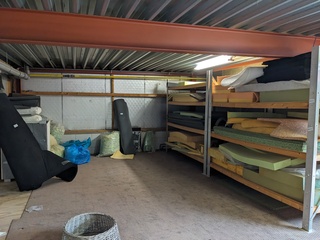 Partij diverse schuim, , , , o.a. akoestisch schuim, schuimrubber, schuimrubber vlokken etc.,inclusief 2x zitelement, Let op! Deze kavel bevindt zich op de eerste verdieping, er is een bouwlift aanwezig