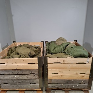 Persoonlijke uitrusting en kleding Defensie, Diverse maten, gebruikt, Bestaande uit ca. 35x palletbox ongesorteerde arti..