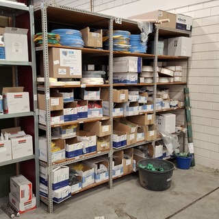 Inhoud 4 meter stelling, , , , bestaande uit o.a. :diverse kitkokers, diverse kitworsten, spuitmonden, glasband, bescher..