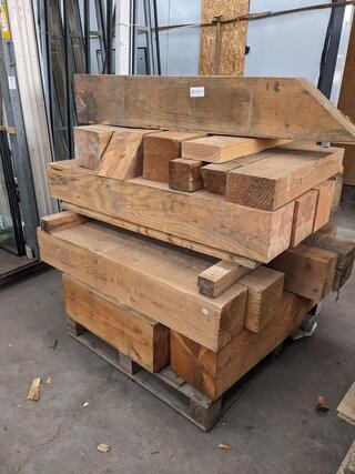 Partij Douglas balken, , , , overwegend 20x20cm en 25x25cm, lengte min/max 40/105cm