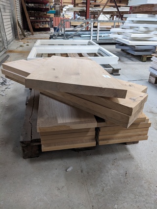 Partij Eiken en mdf met eiken opleg, , lengte tot ca 145cm, breedte tot ca 44cm, ,