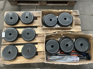 Partij halterschijven en fitness artikelen, , , , Nieuw en showroom modellen.