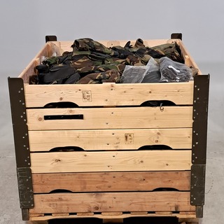 Persoonlijke uitrusting en kleding Defensie, Diverse maten, gebruikt, Bestaande uit ca. 31x palletbox ongesorteerde arti..