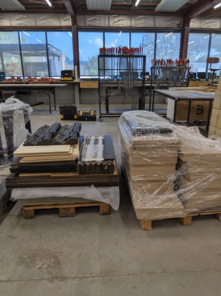 Partij diverse pvc vloerstroken, , , , , loods buiten