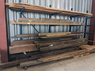 Partij houten balken en planken, , , , inclusief langmateriaal stelling, hxbxd ca. 226x381x78cmdiverse afmetingen hout o.a. kopmaat:50x105mm, 185x200mm, 95x140mm, 70x165mm, 25x140mm, 30x240mm, 95x195mmmax lengte ca. 460cm, Loc hal 4
