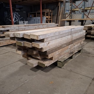 Partij houten balken, , , gebruikt, minimaal lengte ca. 277 cm, maximale lengte ca. 539 cm. 7/23 cm breed, 2/10 cm hoog...