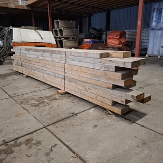 Partij houten balken, , , gebruikt, Minimale lengte ca. 336cm, maximale lengte ca. 400cm.Alles is ca. 17cm en 7cm hoog, Bevindt zich in loods 2