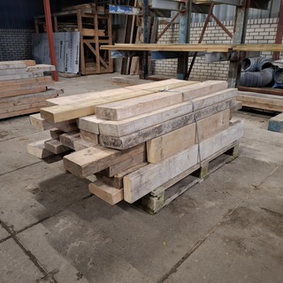 Partij houten balken, , , gebruikt, Minimale lengte ca. 102cm, maximale lengte ca. 192cm.7/23cm breed, 6/7cm hoog., Bevindt zich in loods 2