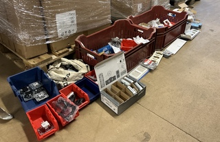 Partij schakelmateriaal, , Nieuw en gebruikt. Let op: de kavelbeschrijving is bepalend. Producten en materialen die op de achtergrond van de foto?s zichtbaar zijn, maken geen deel uit van de kavel. Pallets op achtergrond maken geen deel uit van deze kavel., Deze kavel bevindt zich op de 1e verdieping.