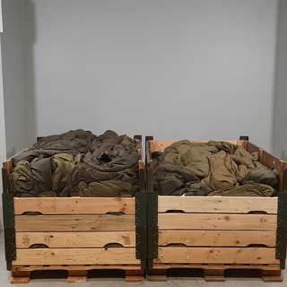 Persoonlijke uitrusting en kleding Defensie, Diverse maten, gebruikt, Bestaande uit ca. 38x palletbox ongesorteerde arti..