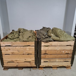 Persoonlijke uitrusting en kleding Defensie, Diverse maten, gebruikt, Bestaande uit ca. 37x palletbox ongesorteerde arti..