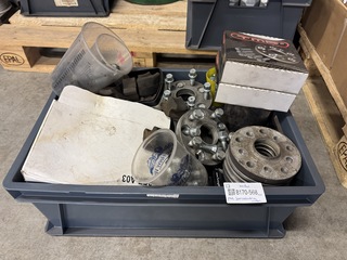 Partij spoorverbreders en wielbouten, Nieuw en gebruikt. Inclusief krat.