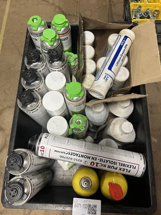 Partij spuitbussen in krat w.o. pur, , Nieuw en gebruikt., Deze kavel bevindt zich op de 1e verdieping.