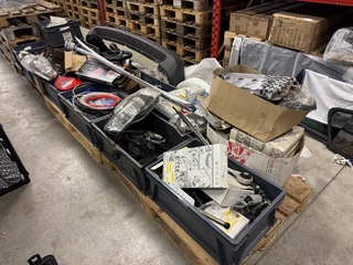 Partij vag accesoires en onderdelen en gereedschap (inclusief 12 kratten), Nieuw, showroom modellen en gebruikt. Zonder pallets.